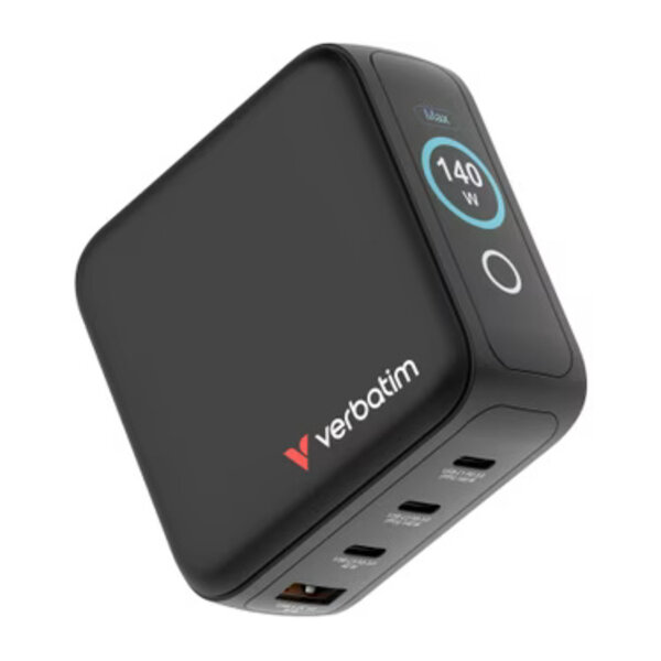 Verbatim Mini GaN oplader met display 140W 4‑poorts