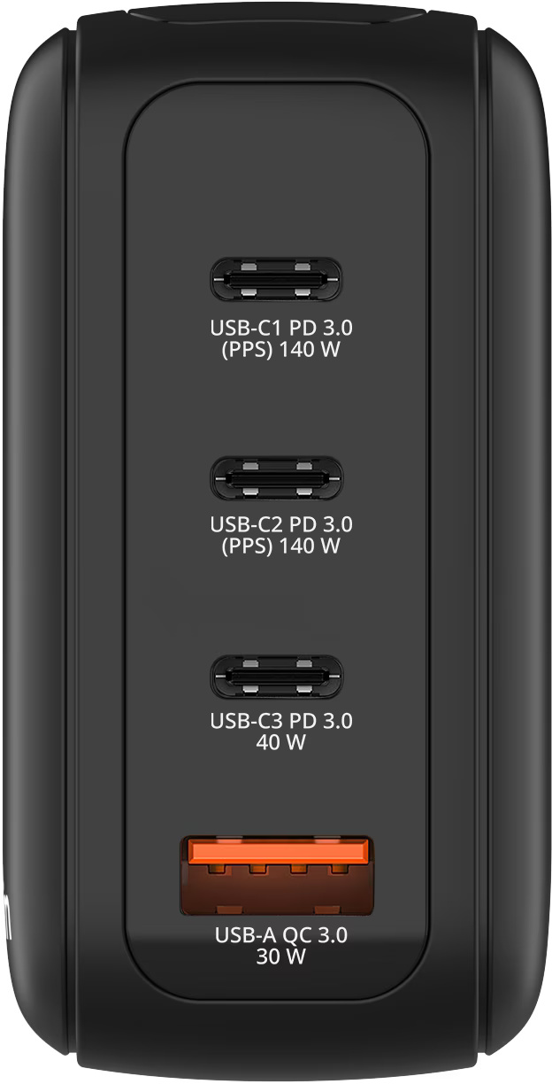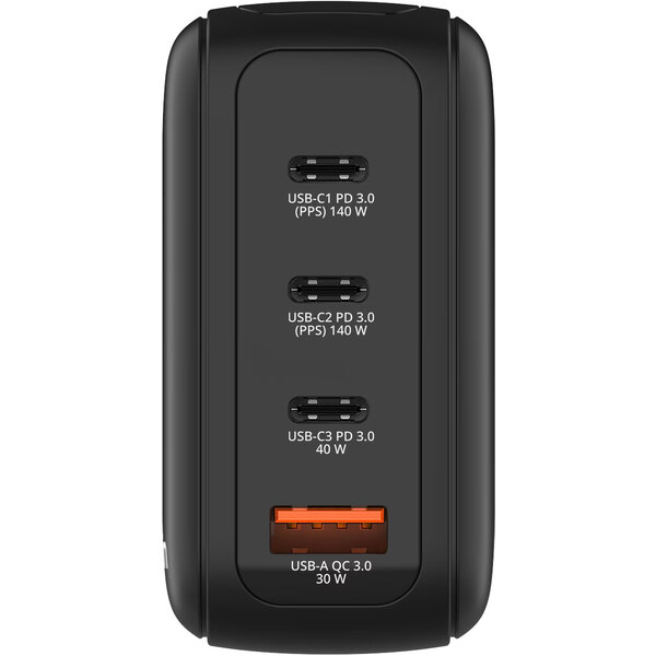 Laad meerdere apparaten tegelijk op met deze compacte GaN‑oplader van Verbatim. Via drie USB‑C‑poorten en één USB‑A‑poort levert de oplader tot 140W totaal vermogen, geschikt voor laptops, tablets en smartphones. Het geïntegreerde display toont realtime informatie over laadstatus en vermogen per poort. Dankzij PPS‑ondersteuning wordt het laadvermogen automatisch afgestemd op elk apparaat. De verwisselbare stekkers maken de oplader geschikt voor gebruik thuis en op reis.